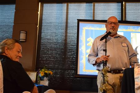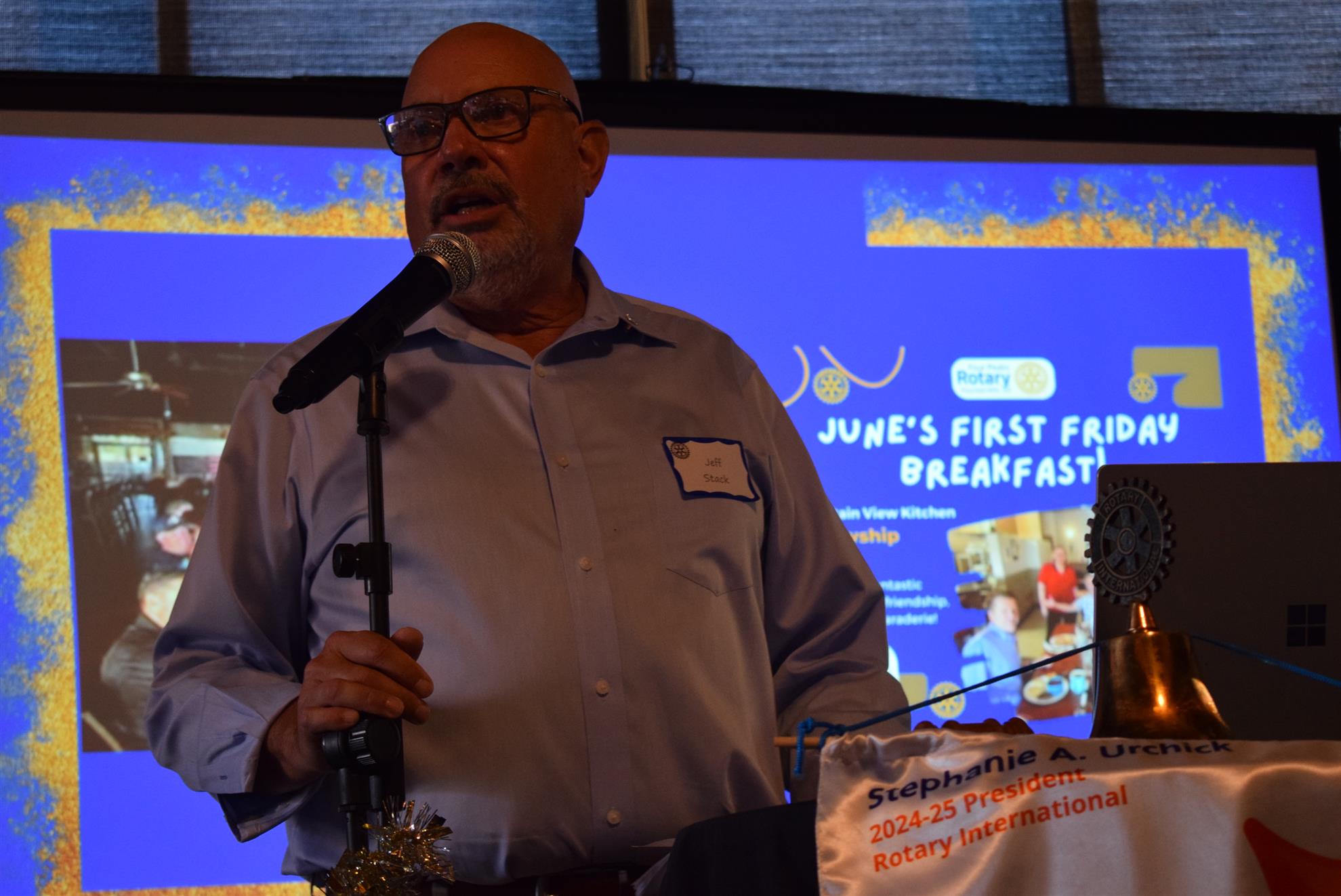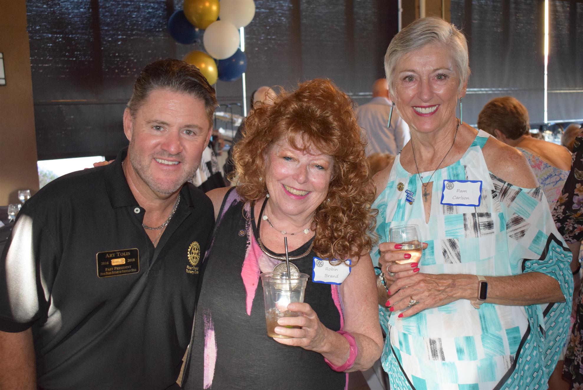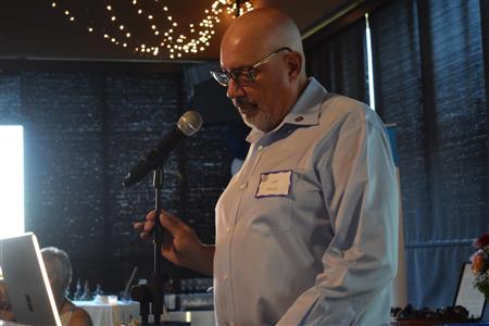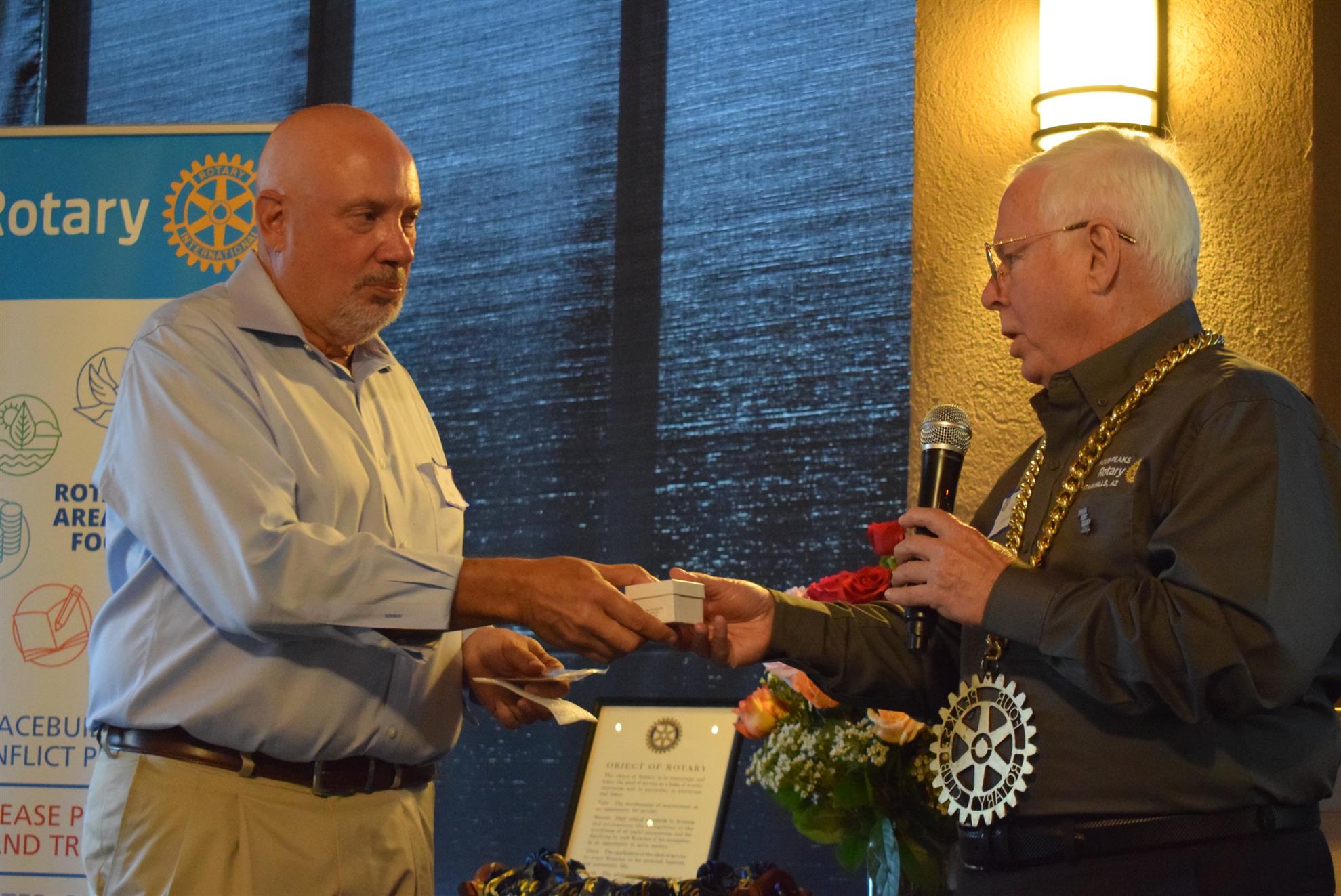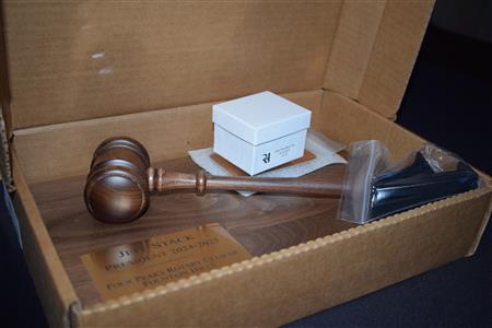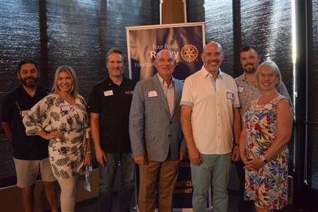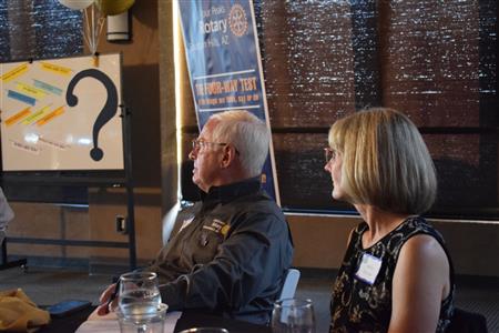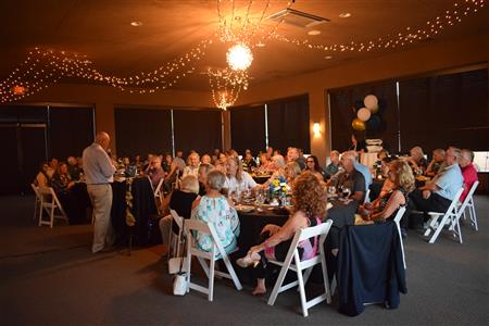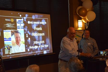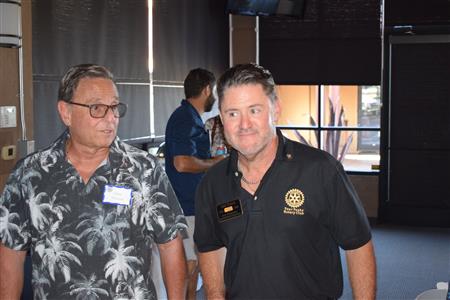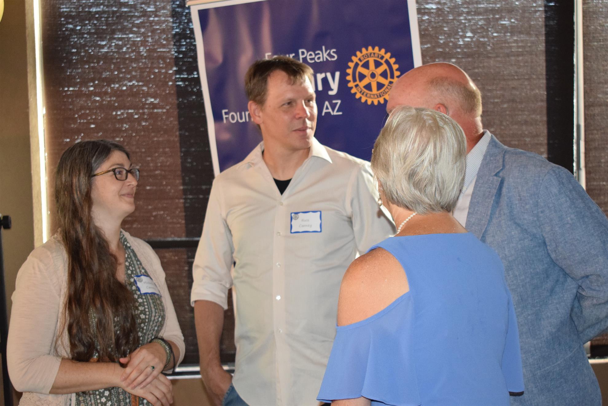 Magic Man Jeff Stack recaps a great year of Four Peaks Rotary achievements and hands the gavel over to incoming president Nick Proctor as club members, new members and spouses celebrate friendship and service above self.