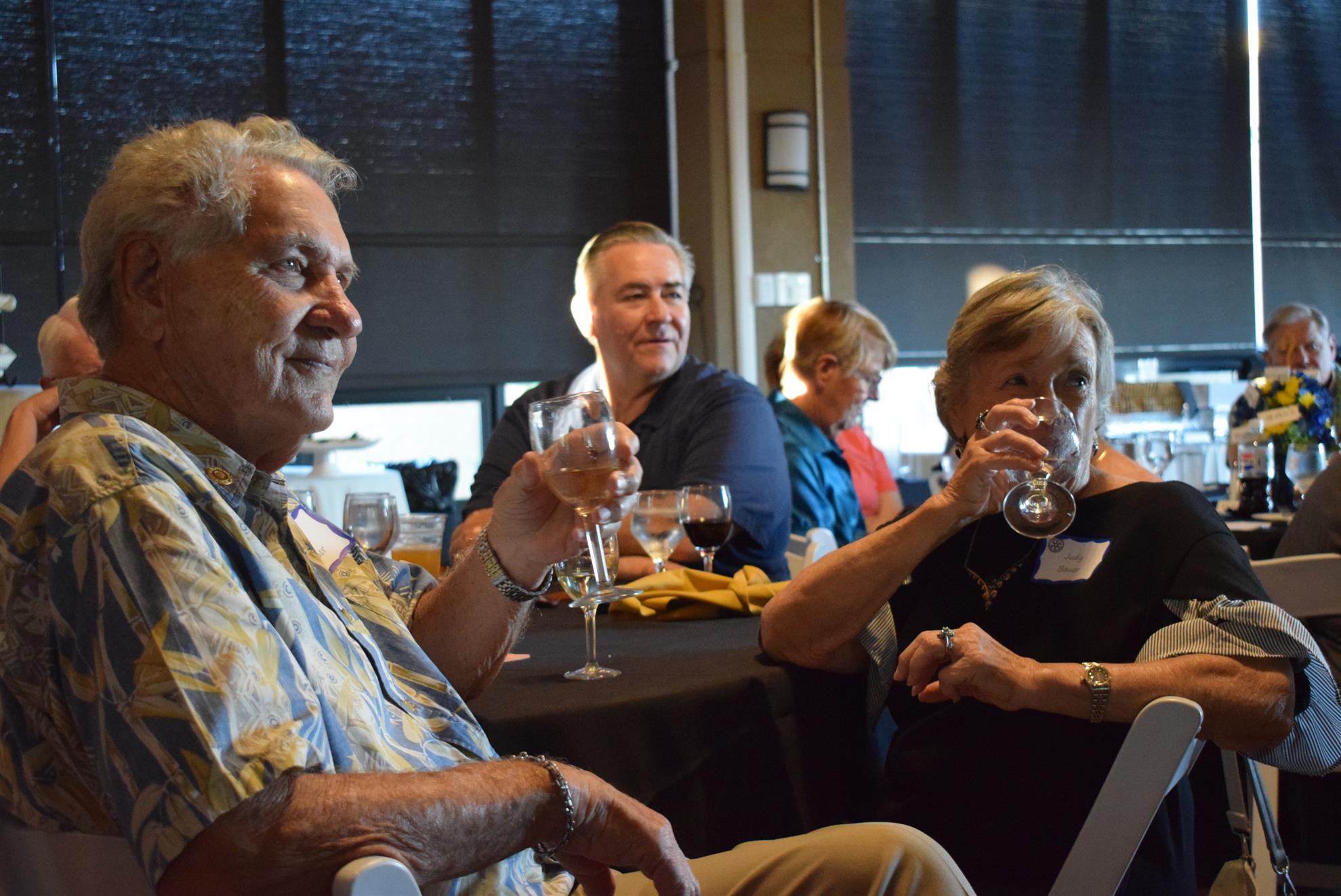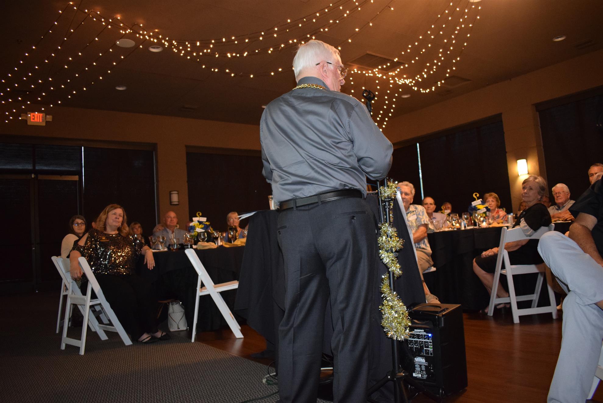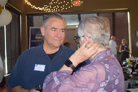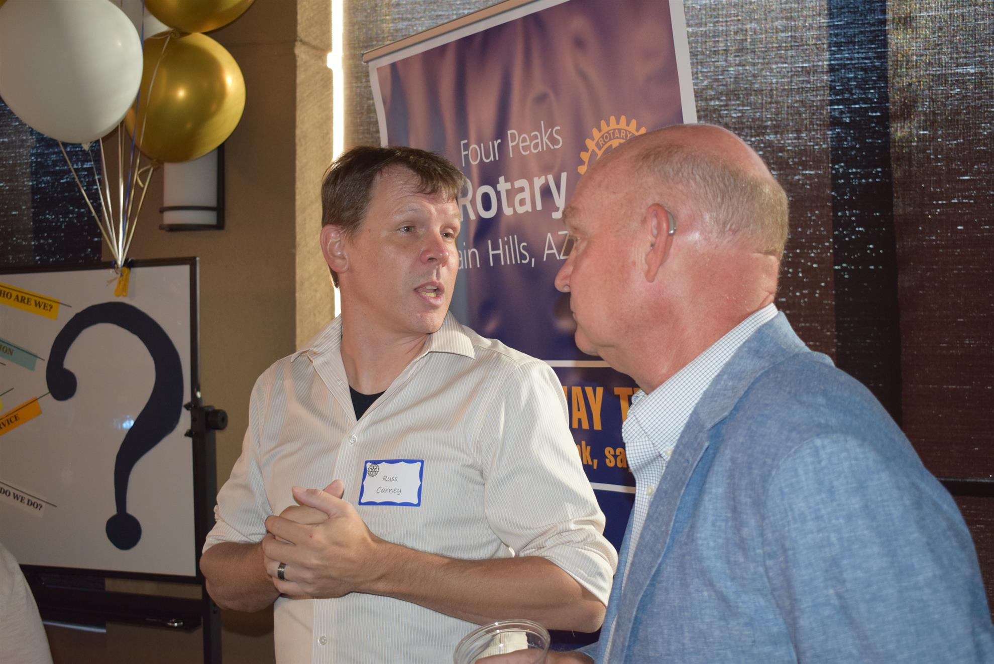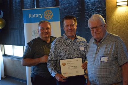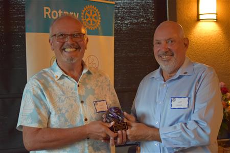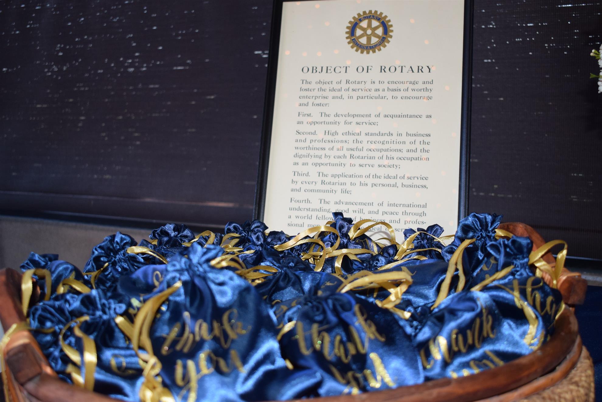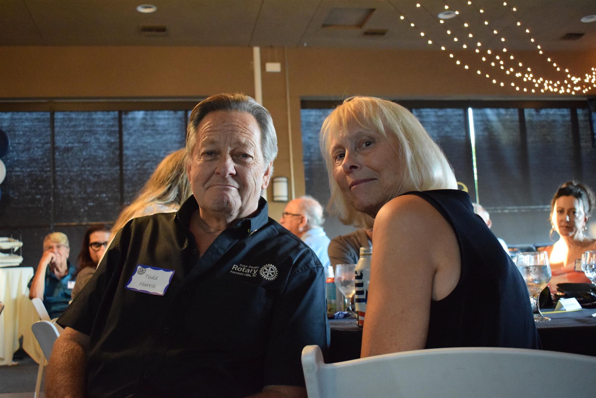 Magic Man Jeff Stack recaps a great year of Four Peaks Rotary achievements and hands the gavel over to incoming president Nick Proctor as club members, new members and spouses celebrate friendship and service above self.