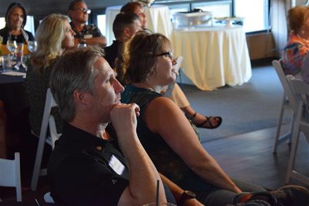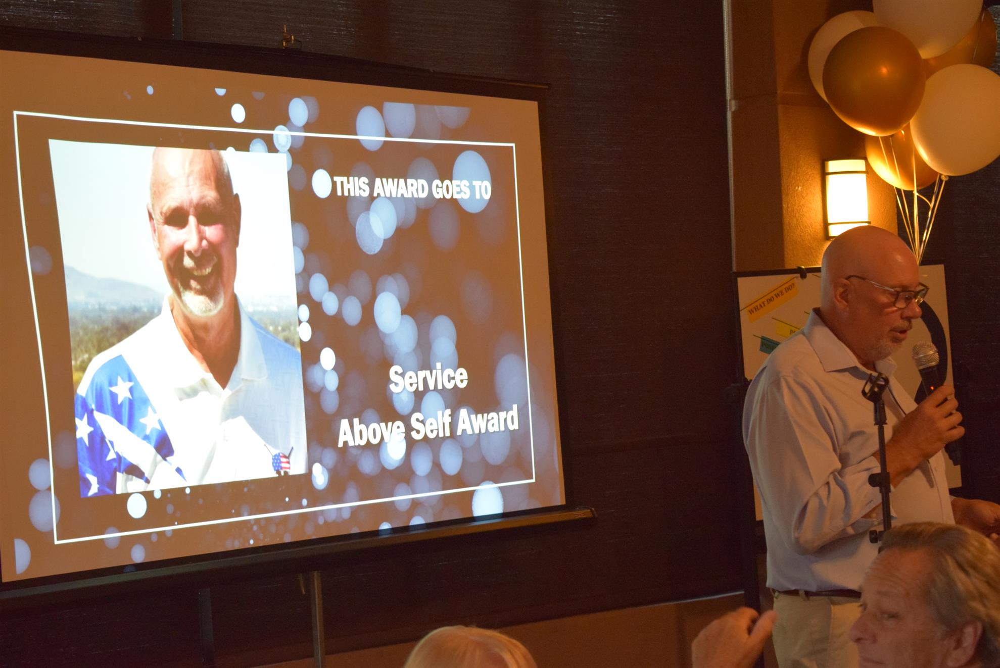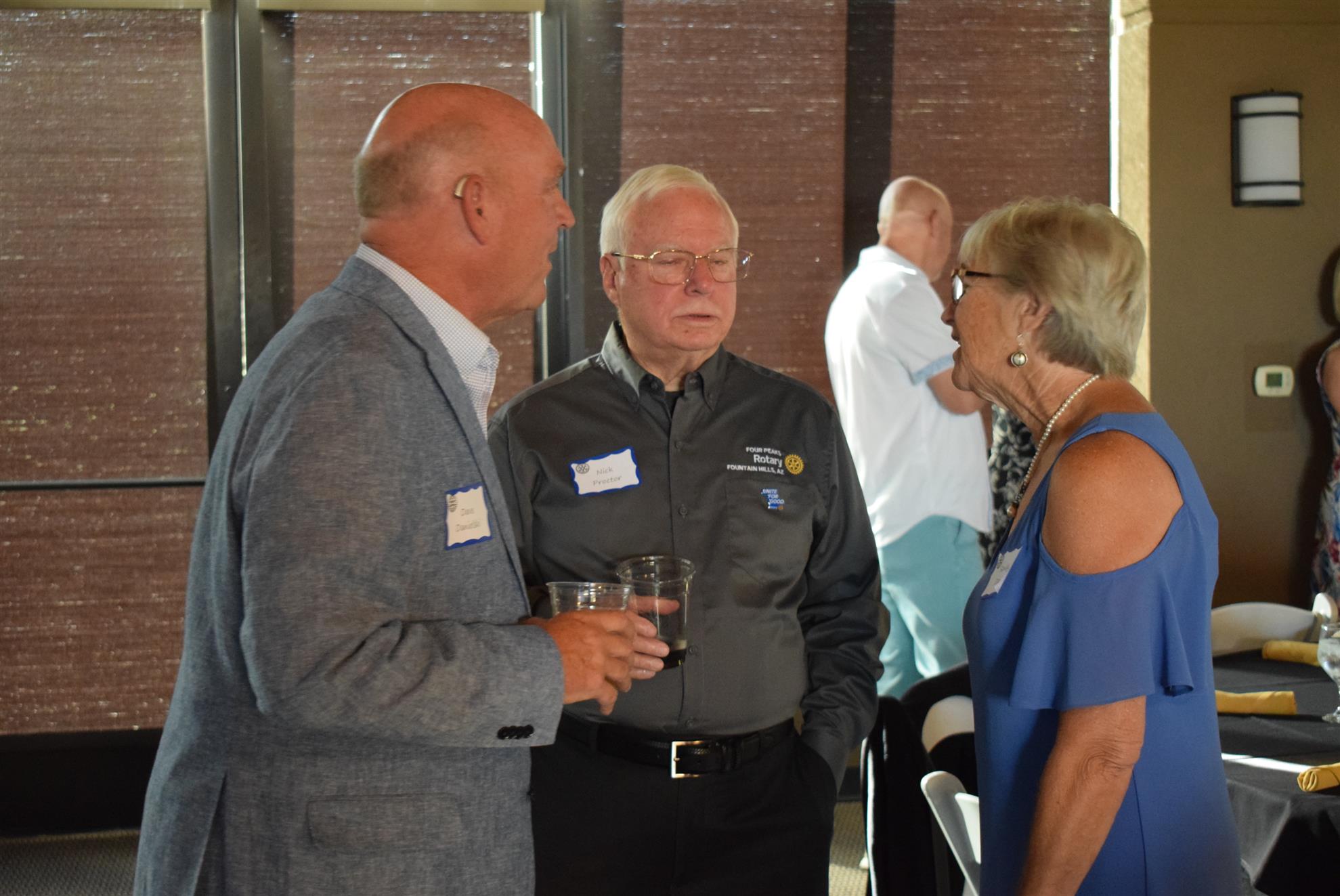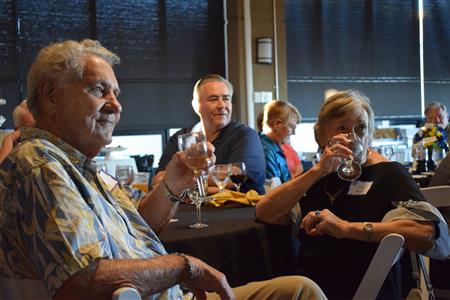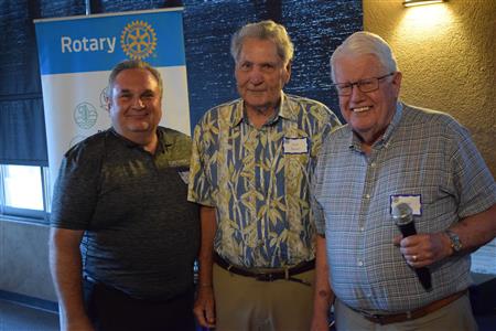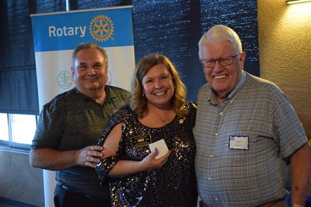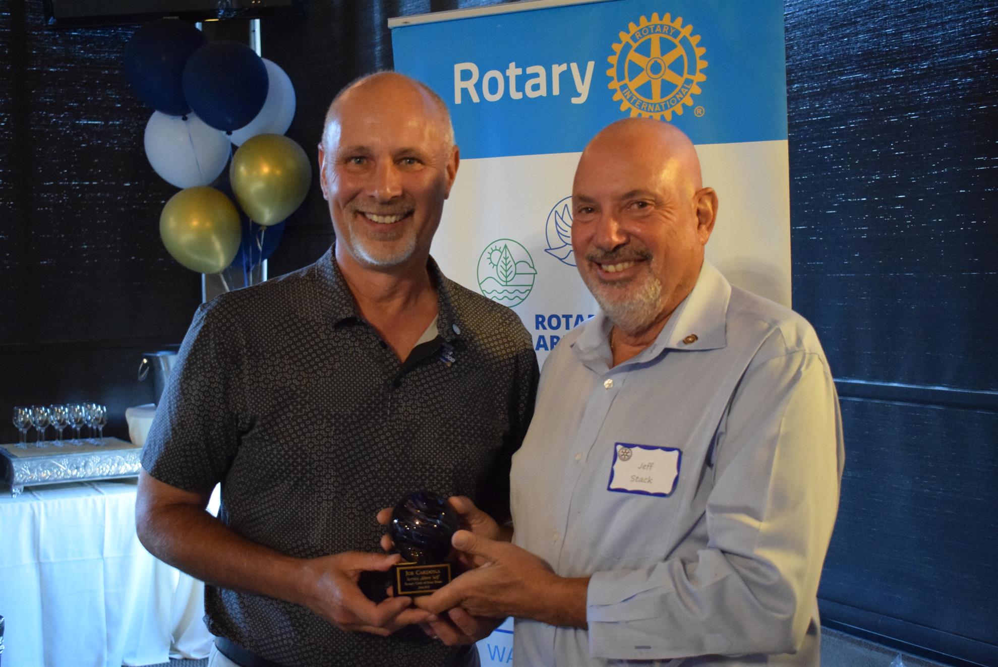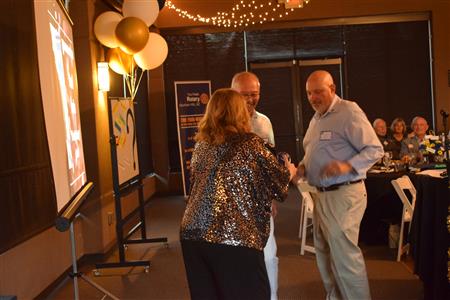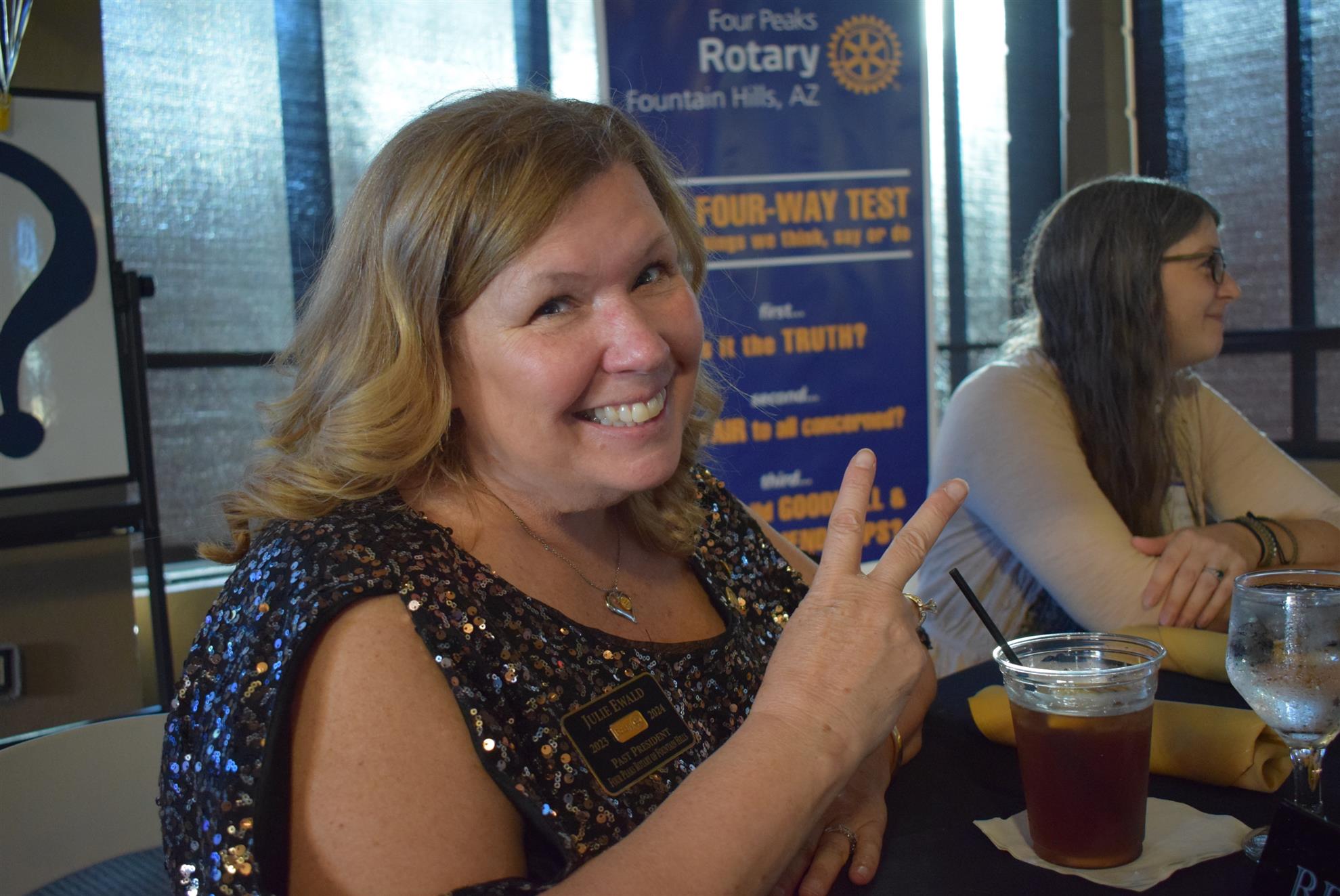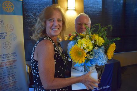 Magic Man Jeff Stack recaps a great year of Four Peaks Rotary achievements and hands the gavel over to incoming president Nick Proctor as club members, new members and spouses celebrate friendship and service above self.