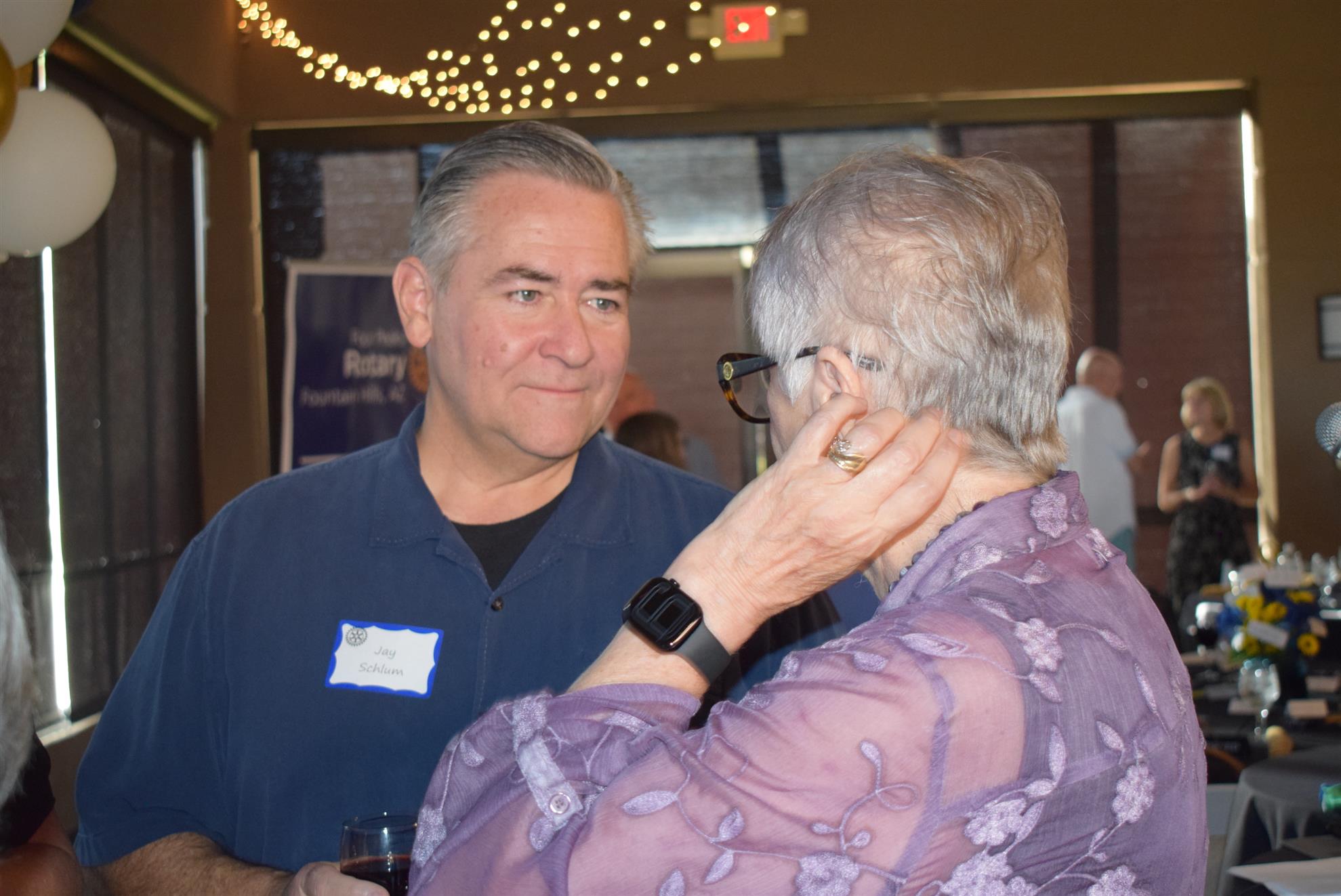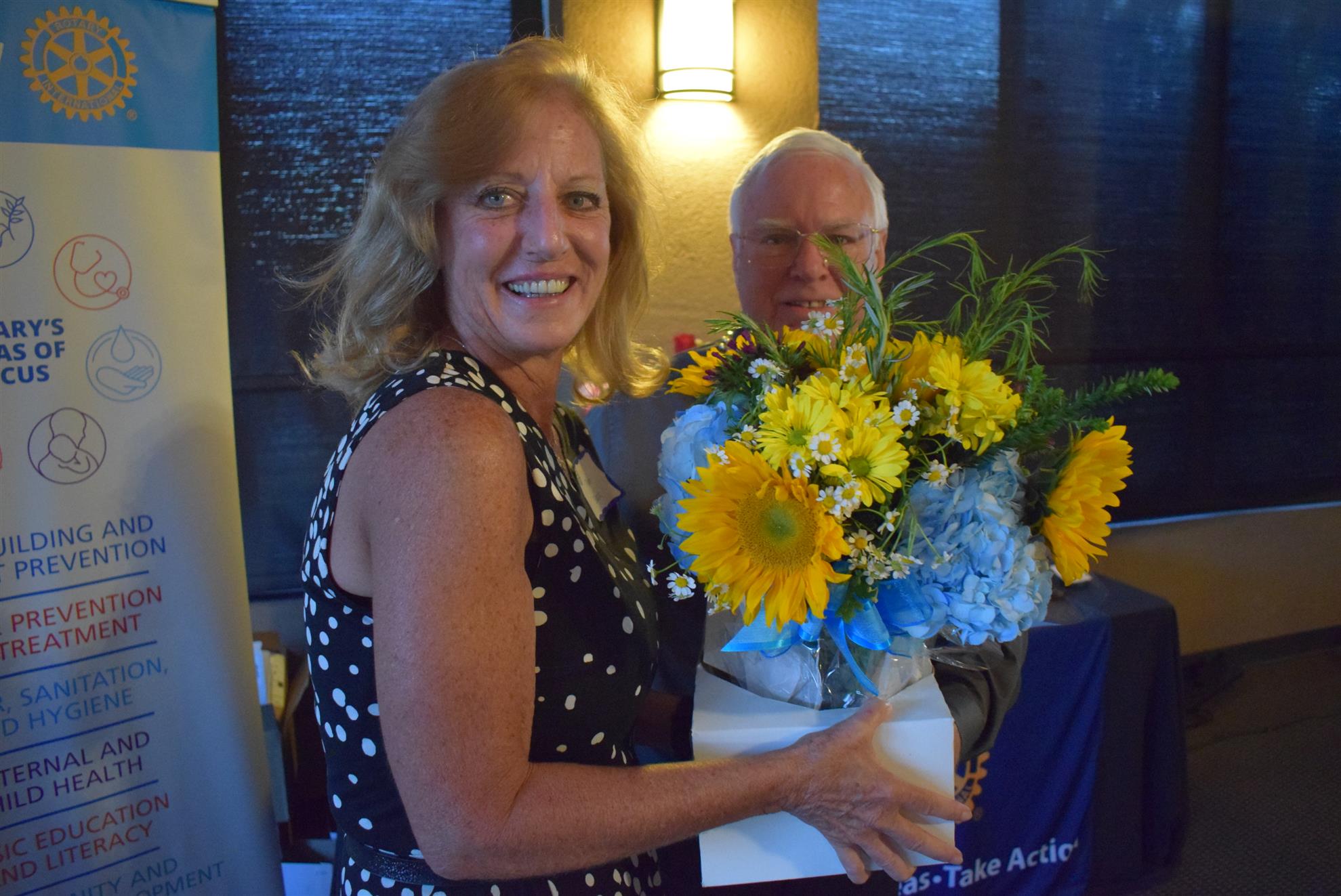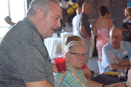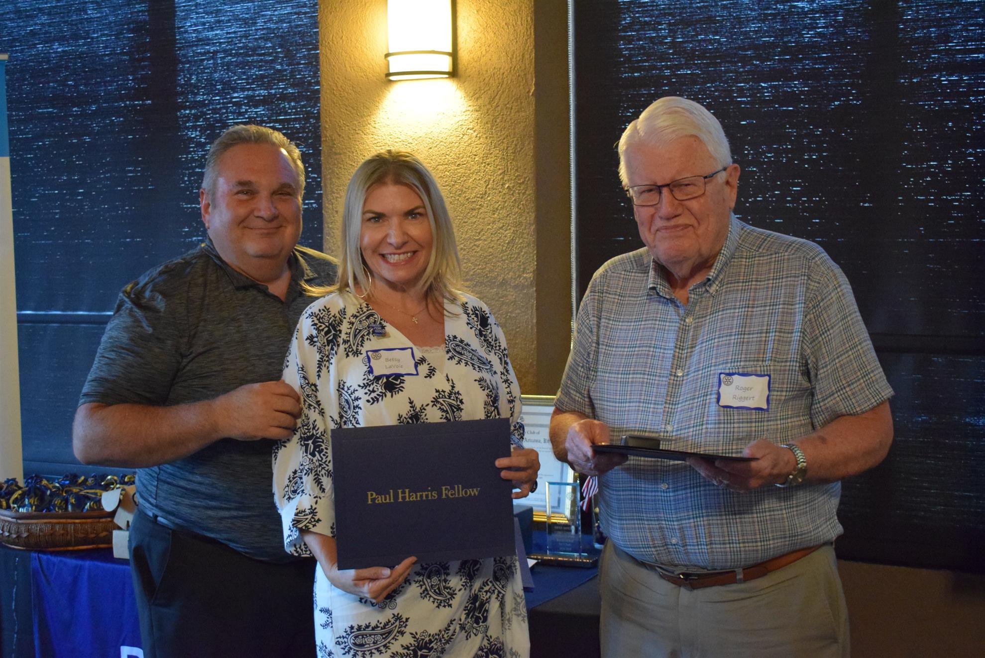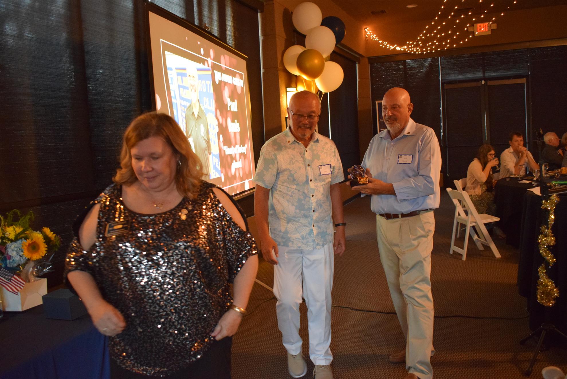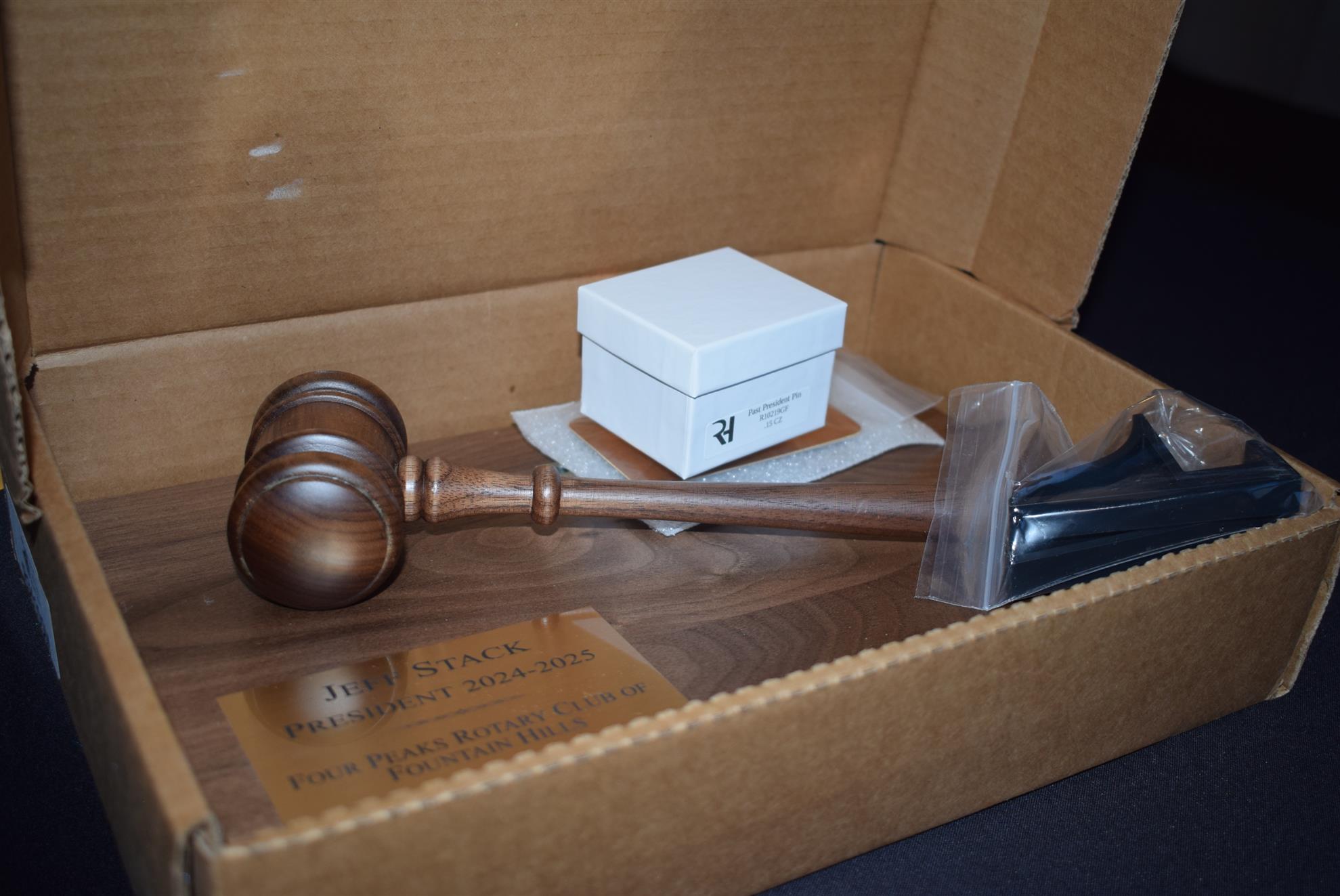 Magic Man Jeff Stack recaps a great year of Four Peaks Rotary achievements and hands the gavel over to incoming president Nick Proctor as club members, new members and spouses celebrate friendship and service above self.