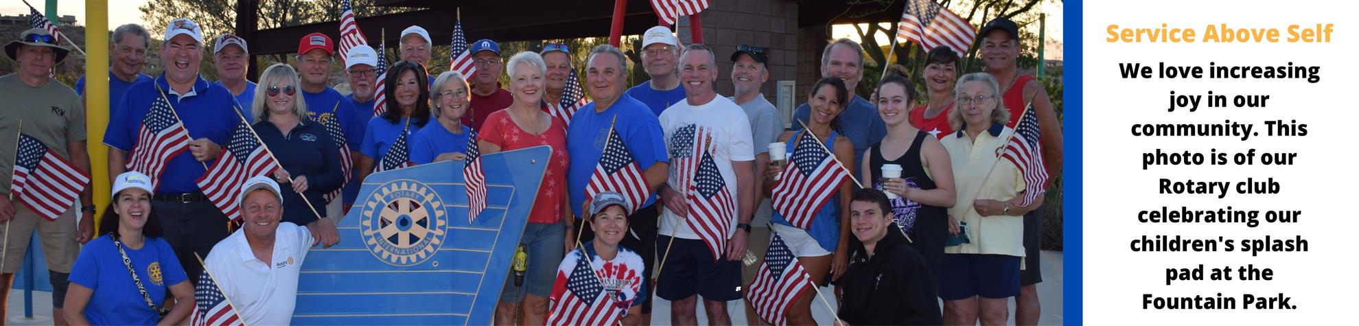 Each year on Memorial Day, a proud and stirring transformation takes place in the heart of Fountain Hills, Arizona. Under brilliant blue skies, the Four Peaks Rotary Club leads a powerful tradition—the Annual Memorial Day Flag Installation at Fountain Park from 6:00am-6:00pm. The project started back in the club early years with the vision of our late Bill Bemish. Rotarian Paul Perreault leads the way continuing this wonderful tradition for our club and community. Thank you to all who participate!