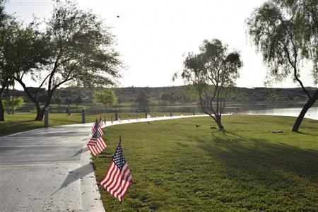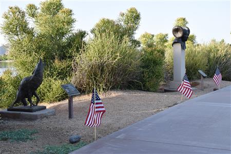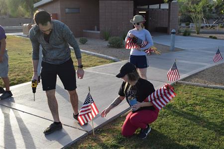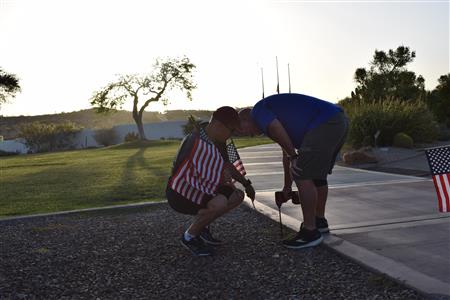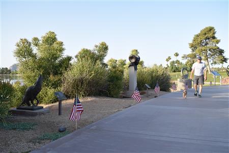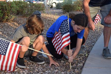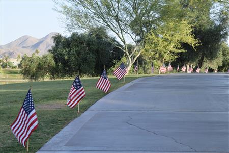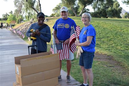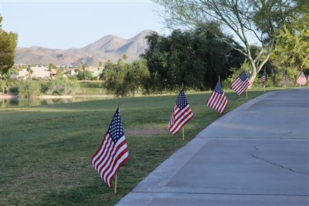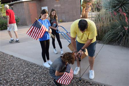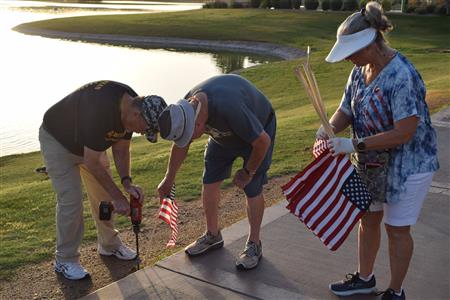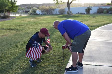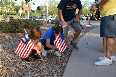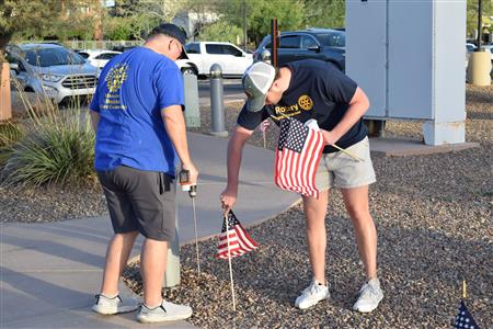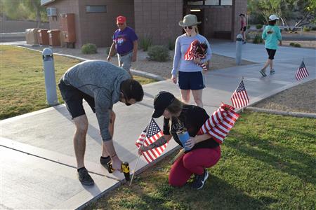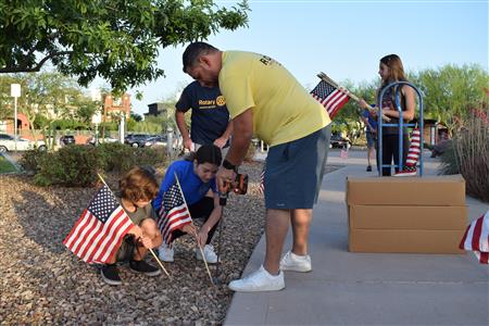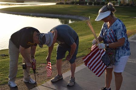 Members of the Fountain Hills community joined Four Peaks Rotarians to place more than 300 American flags around the Fountain Park walkway on Monday, May 30.