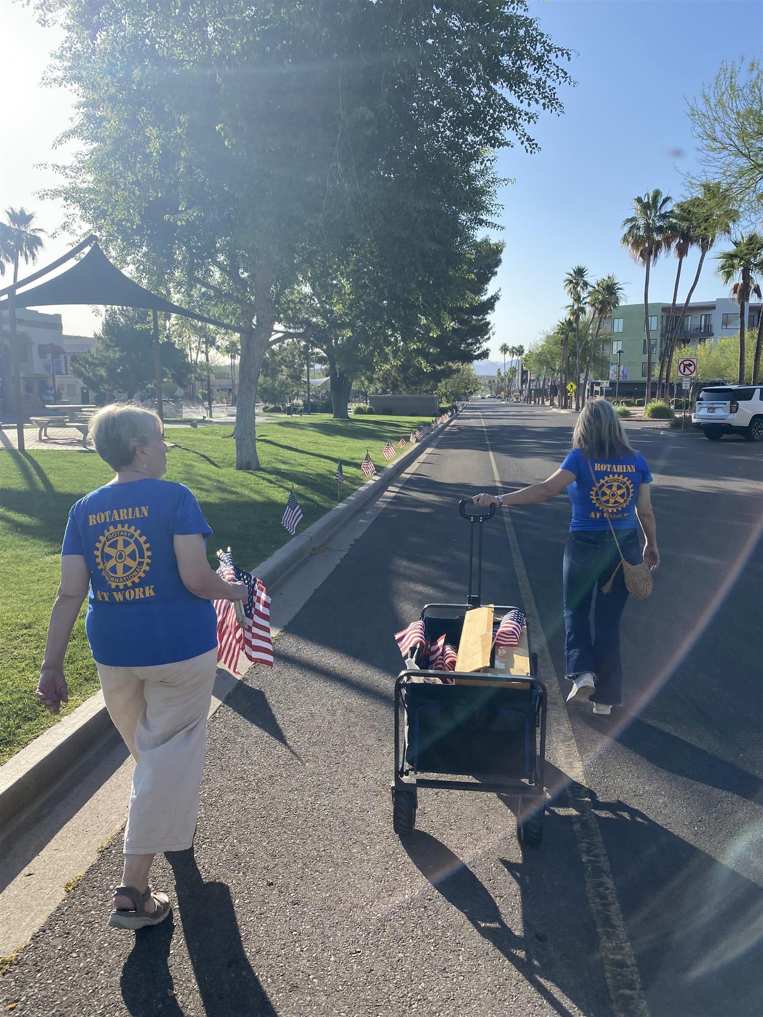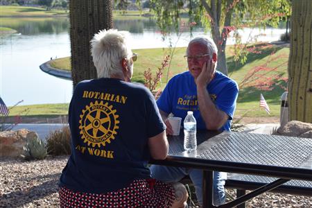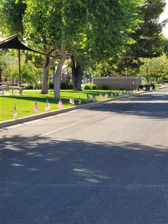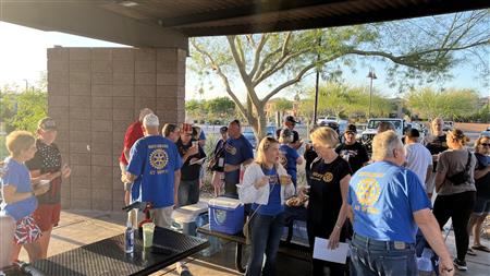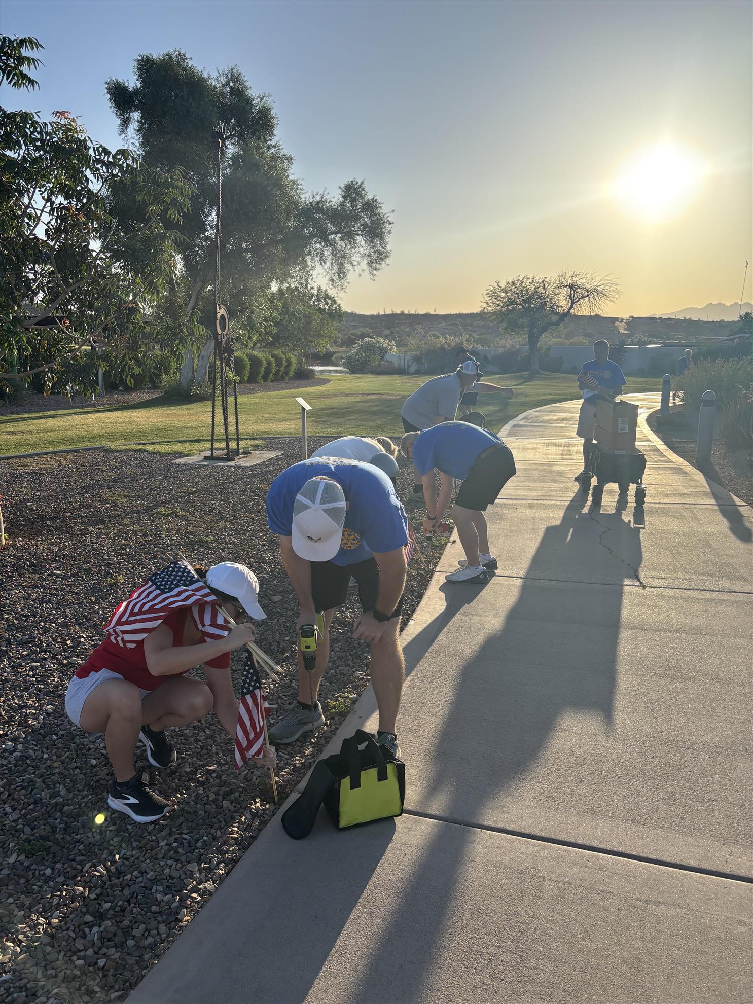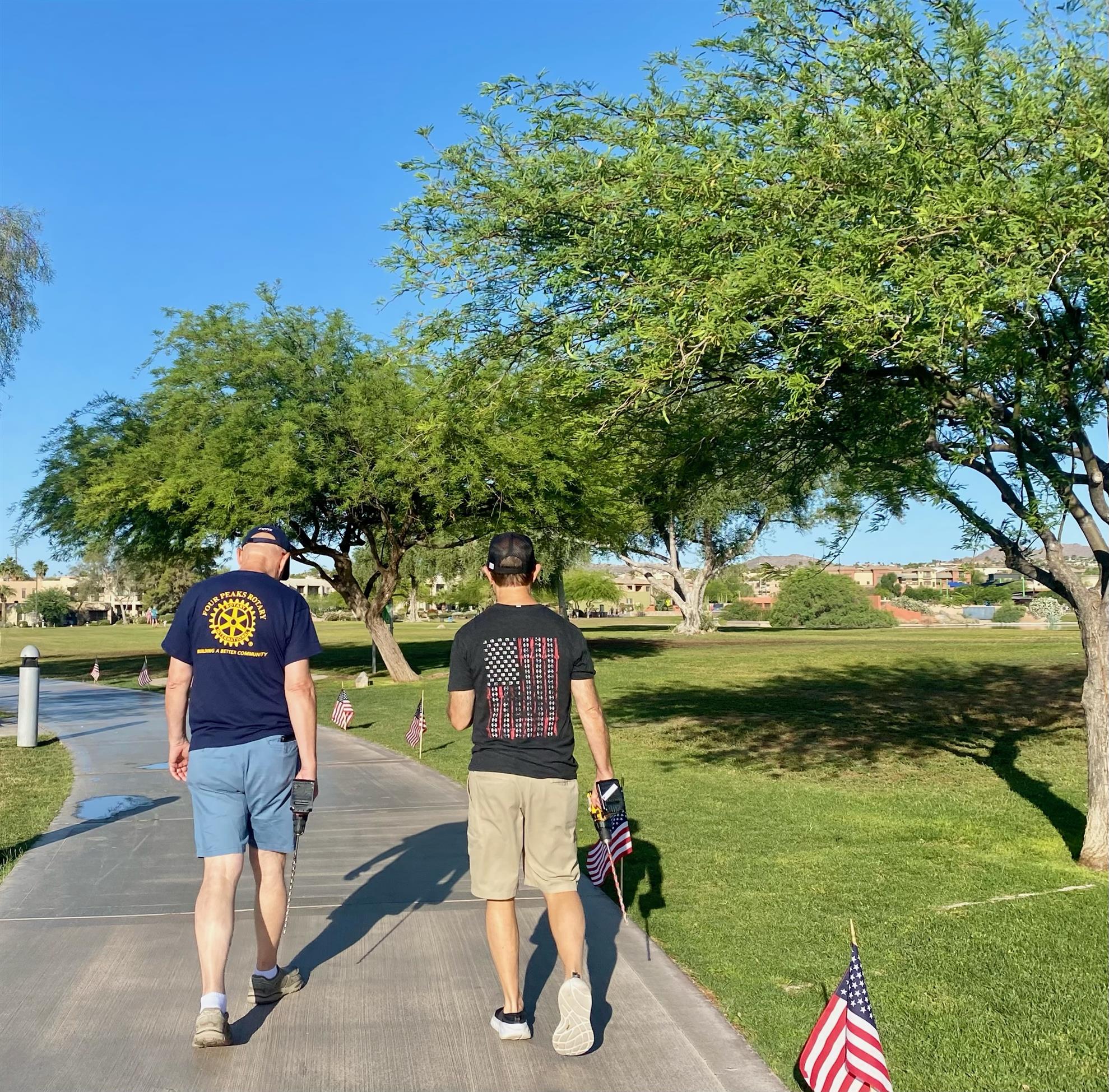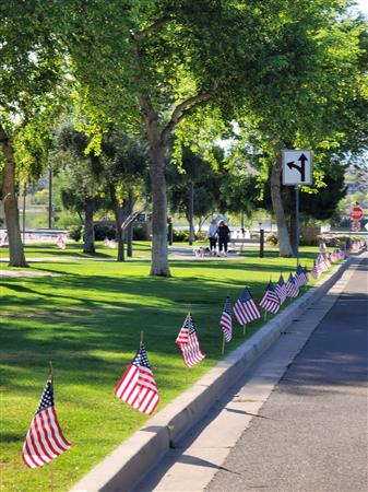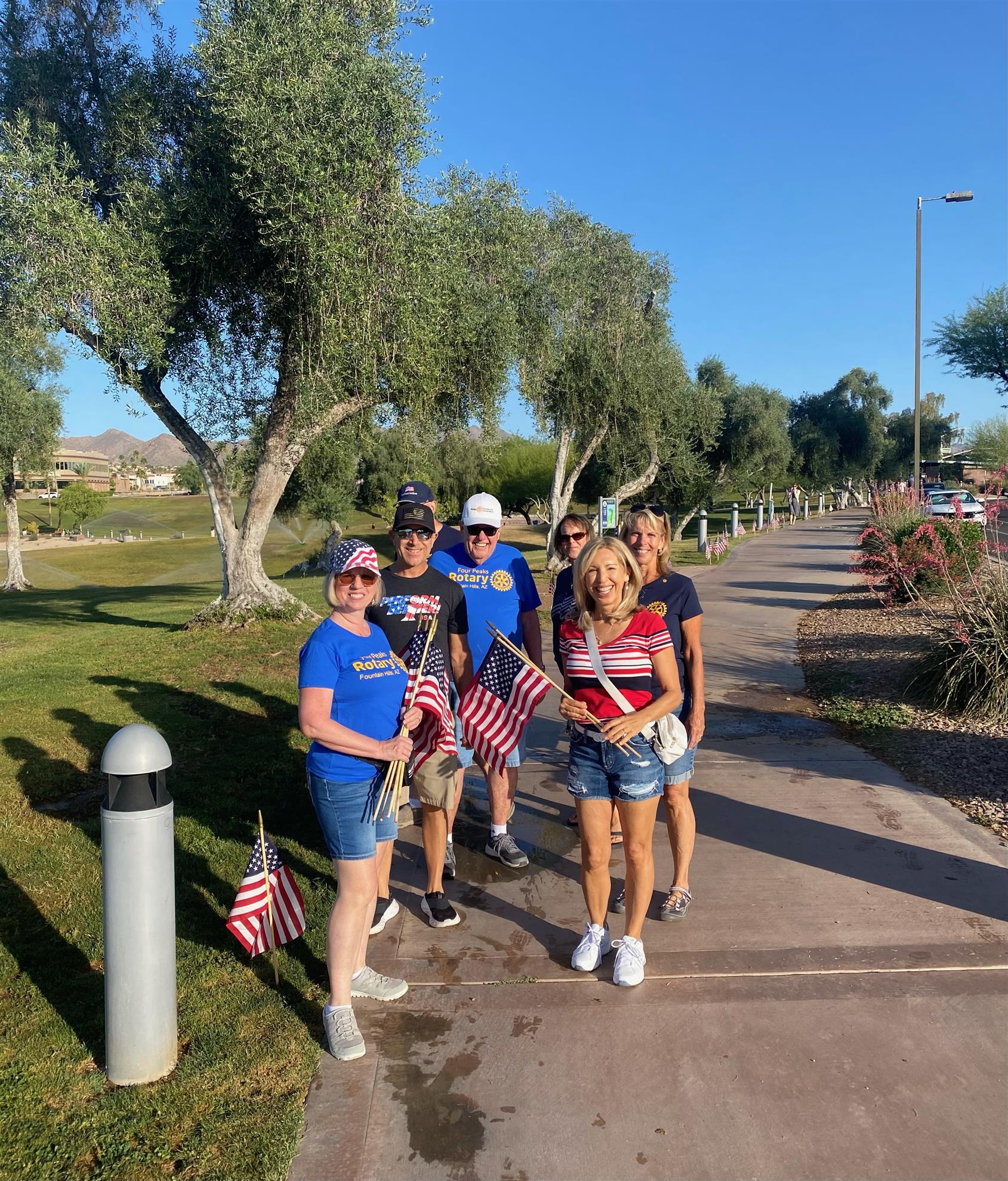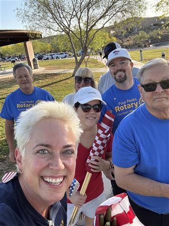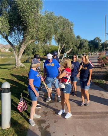 Four Peaks Rotarians are joined by members of the Fountain Hills community to honor our fallen servicemen by placing flags around Fountain Park and Avenue of the Fountain.
