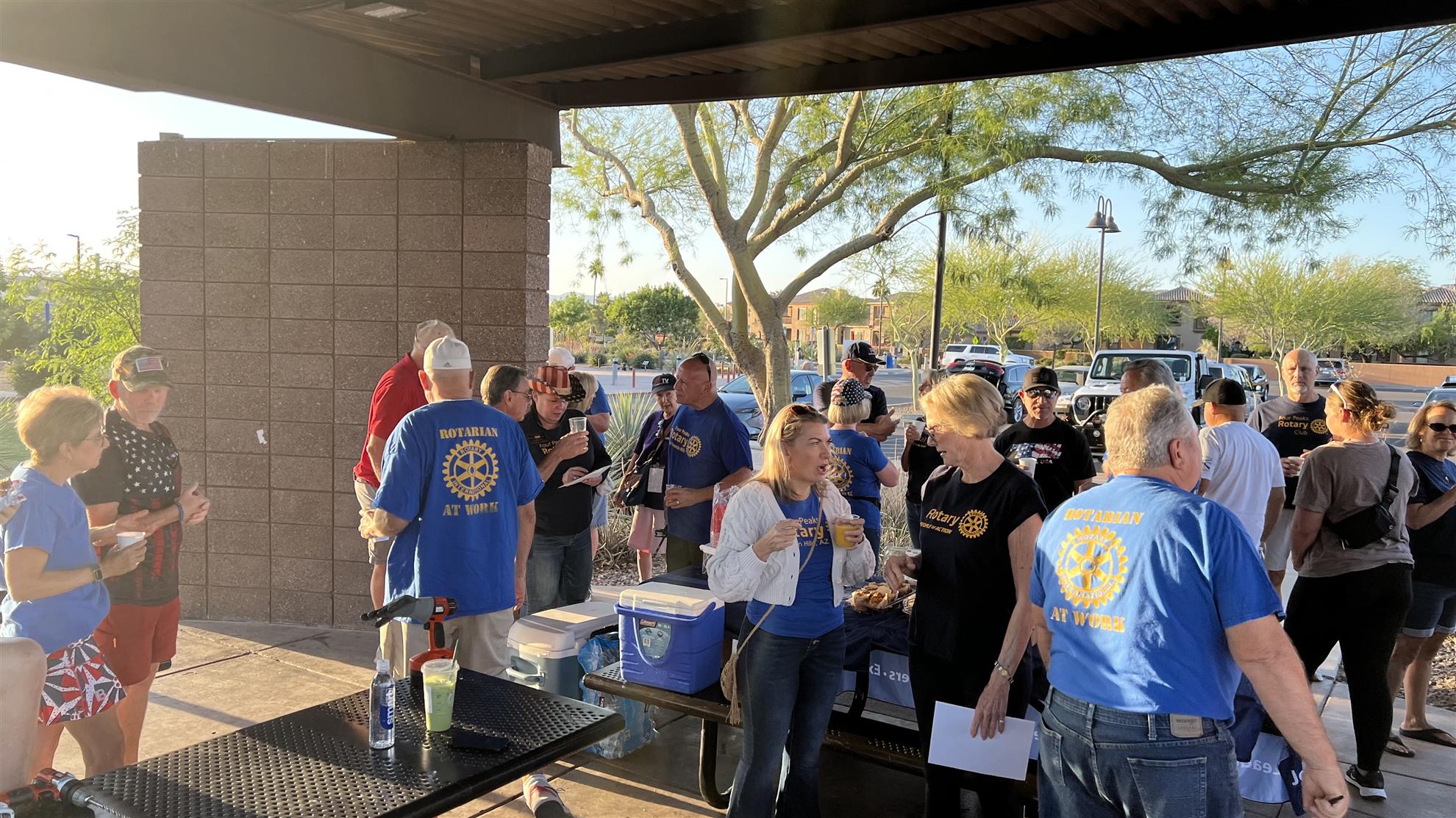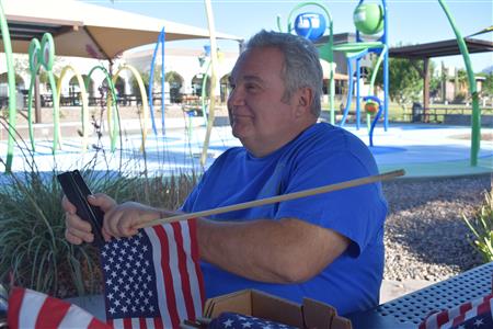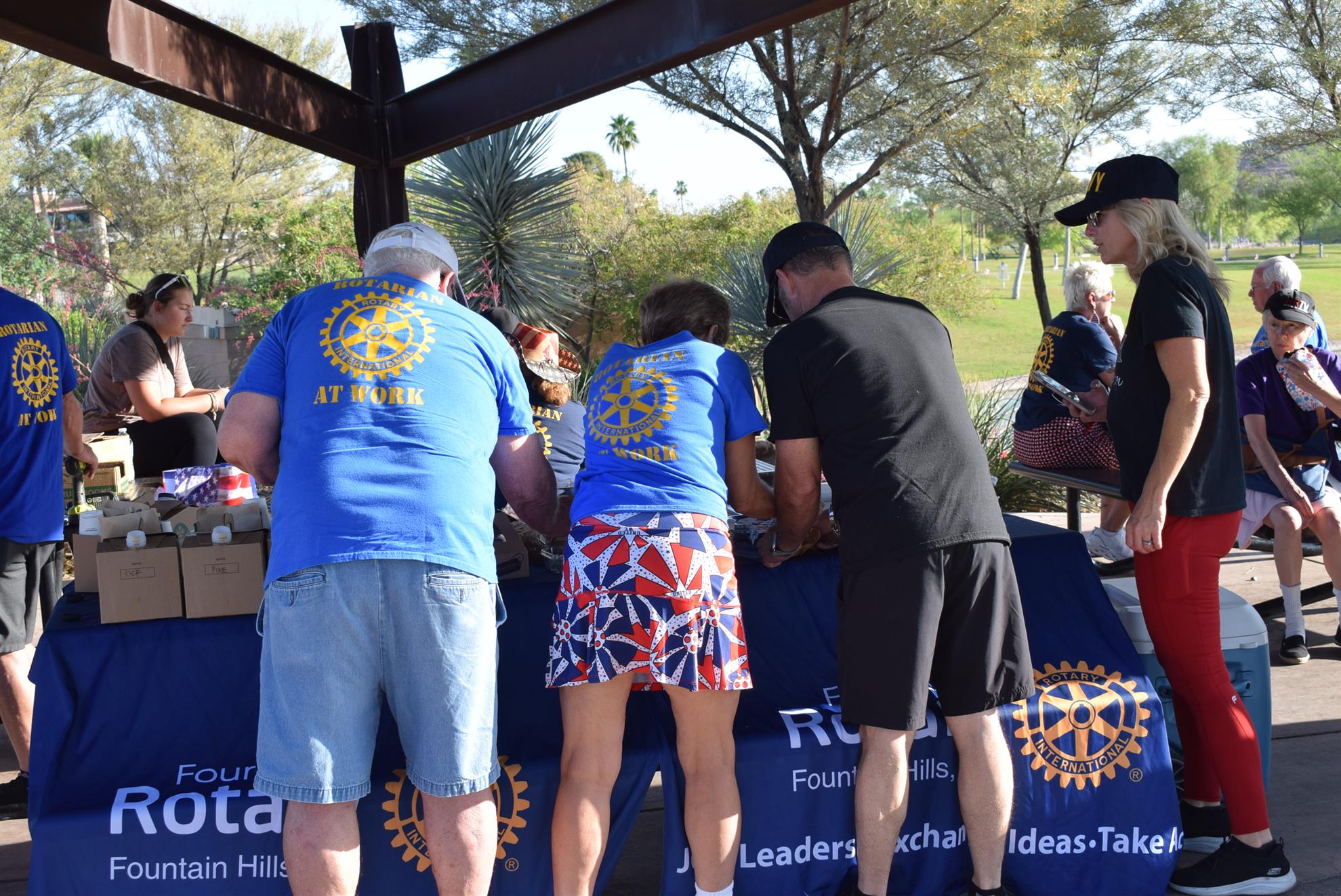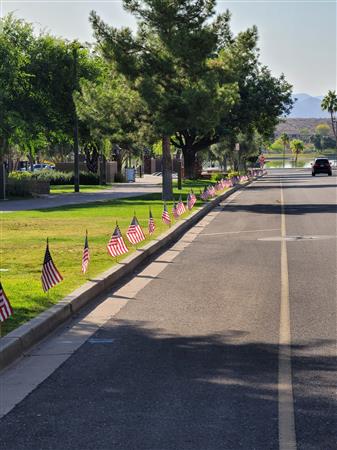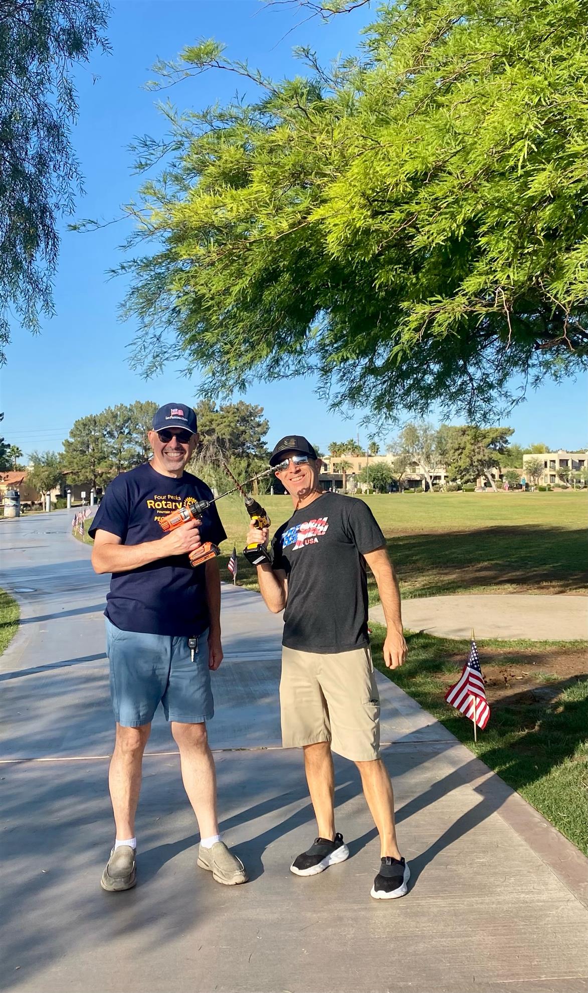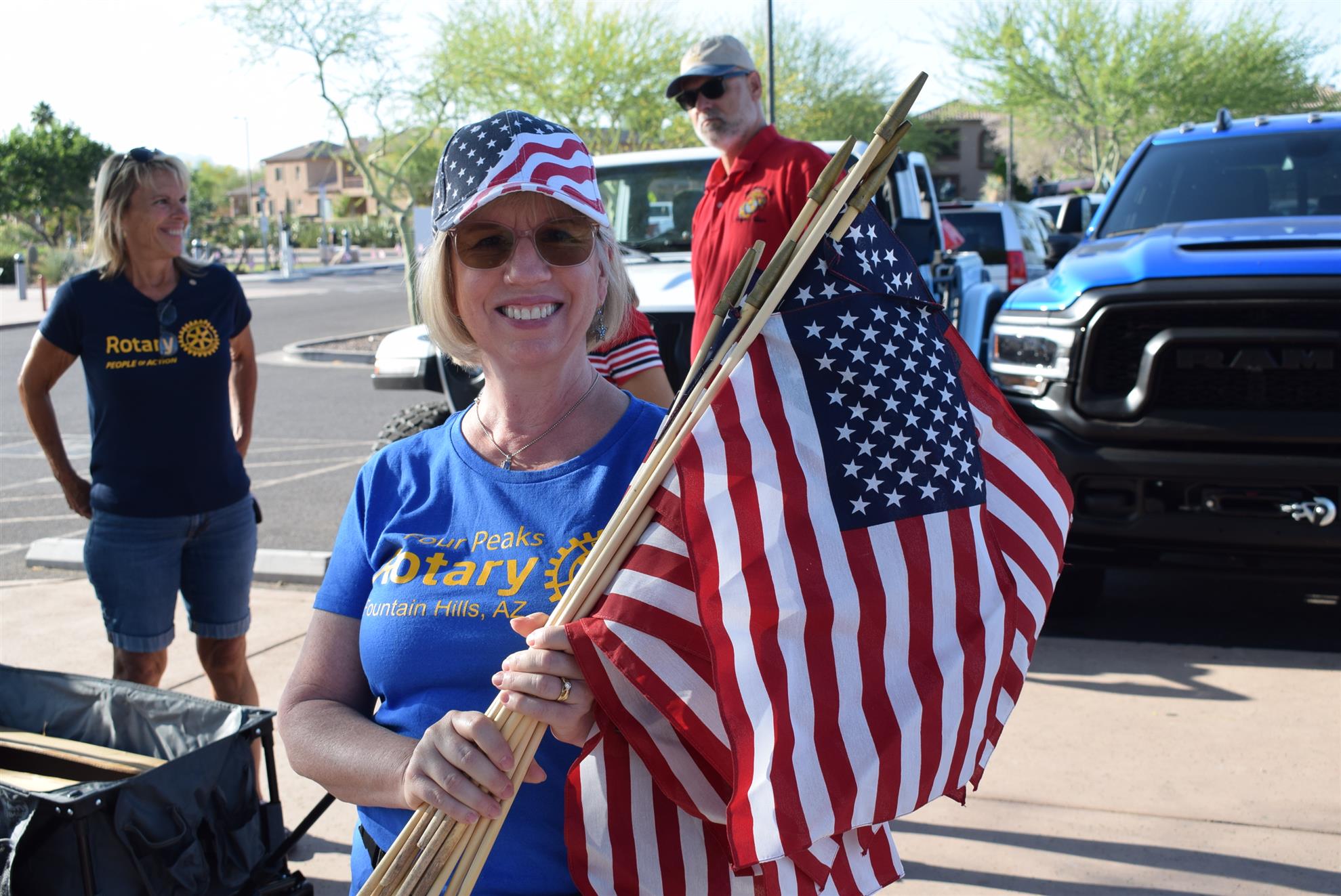Four Peaks Rotarians are joined by members of the Fountain Hills community to honor our fallen servicemen by placing flags around Fountain Park and Avenue of the Fountain.