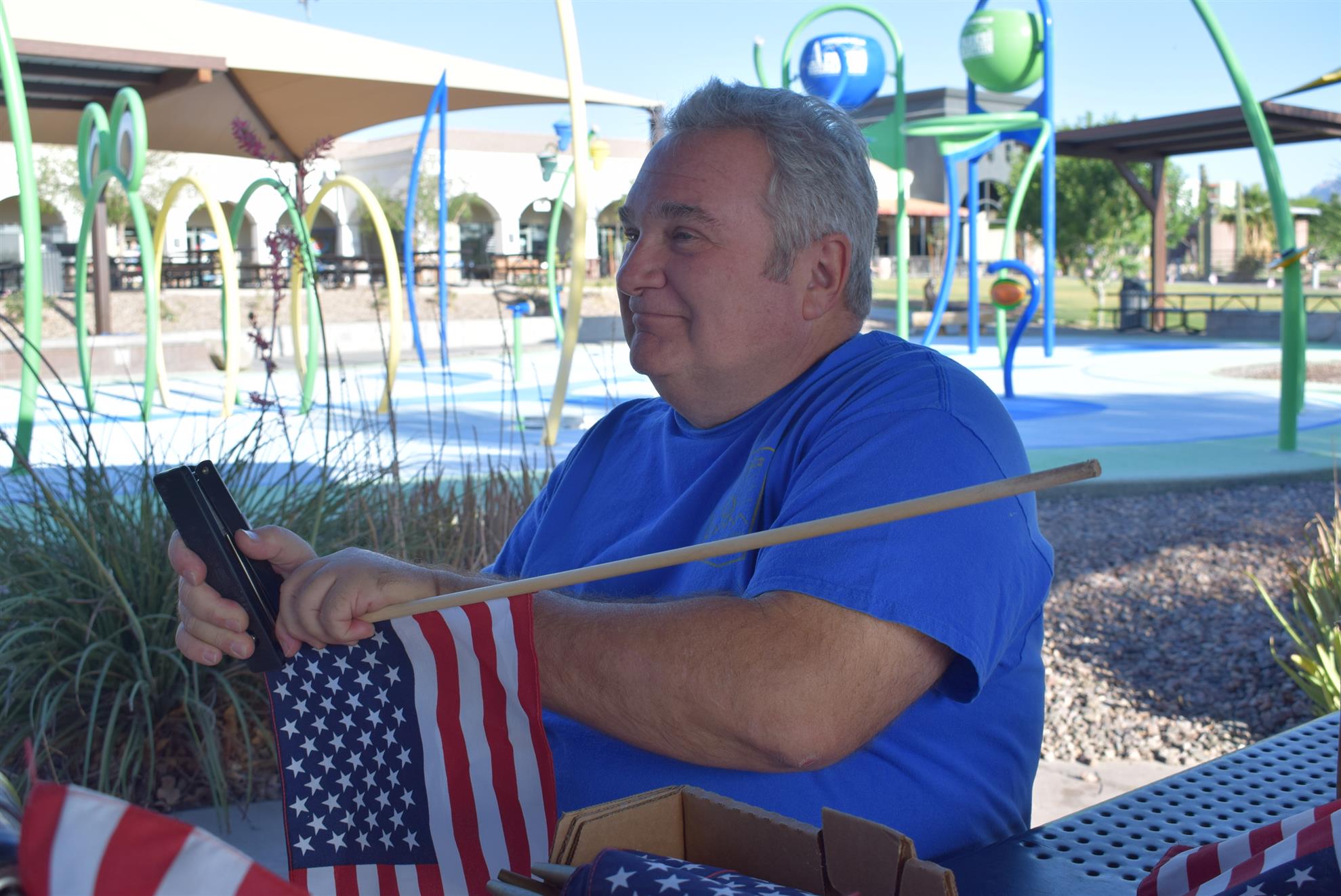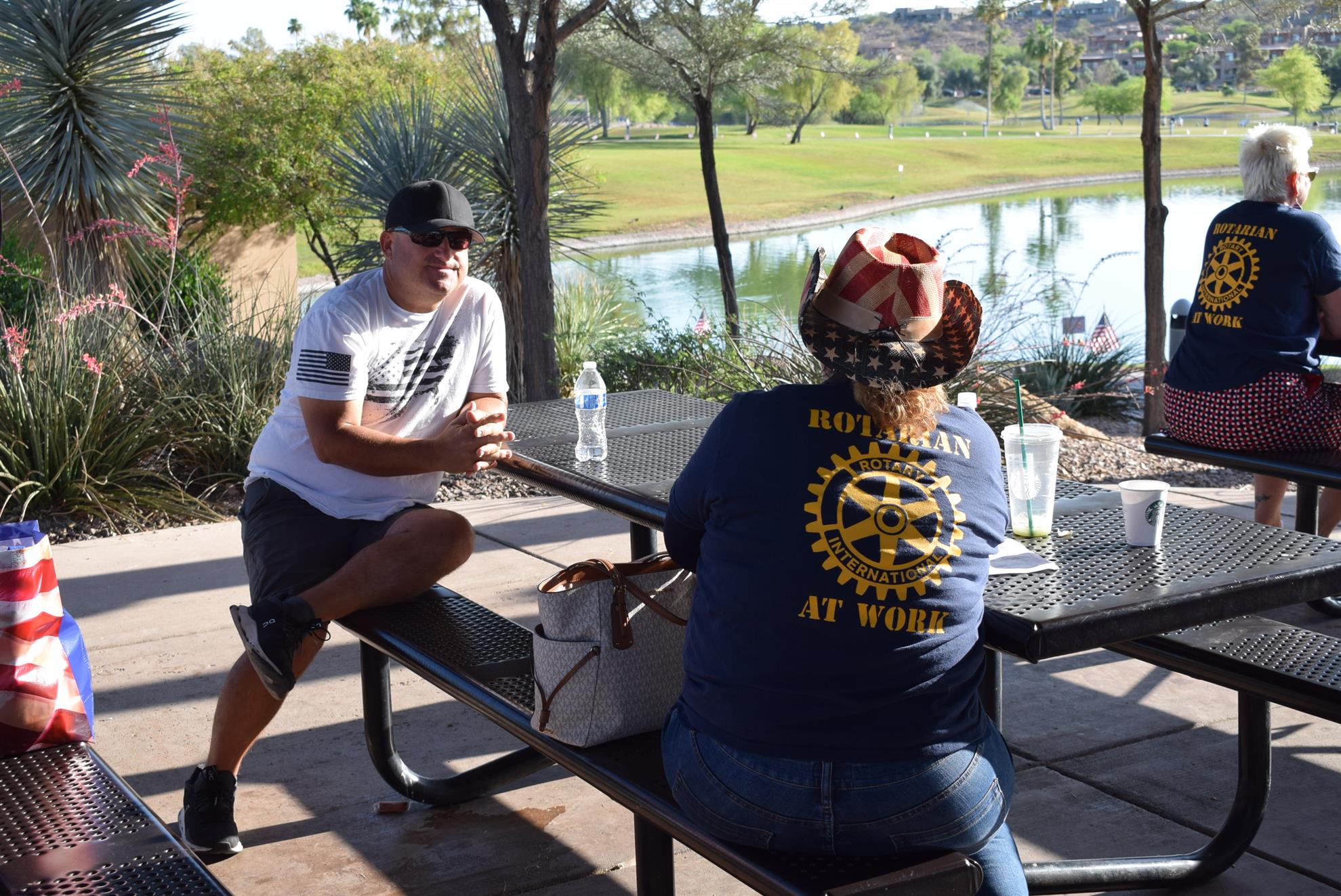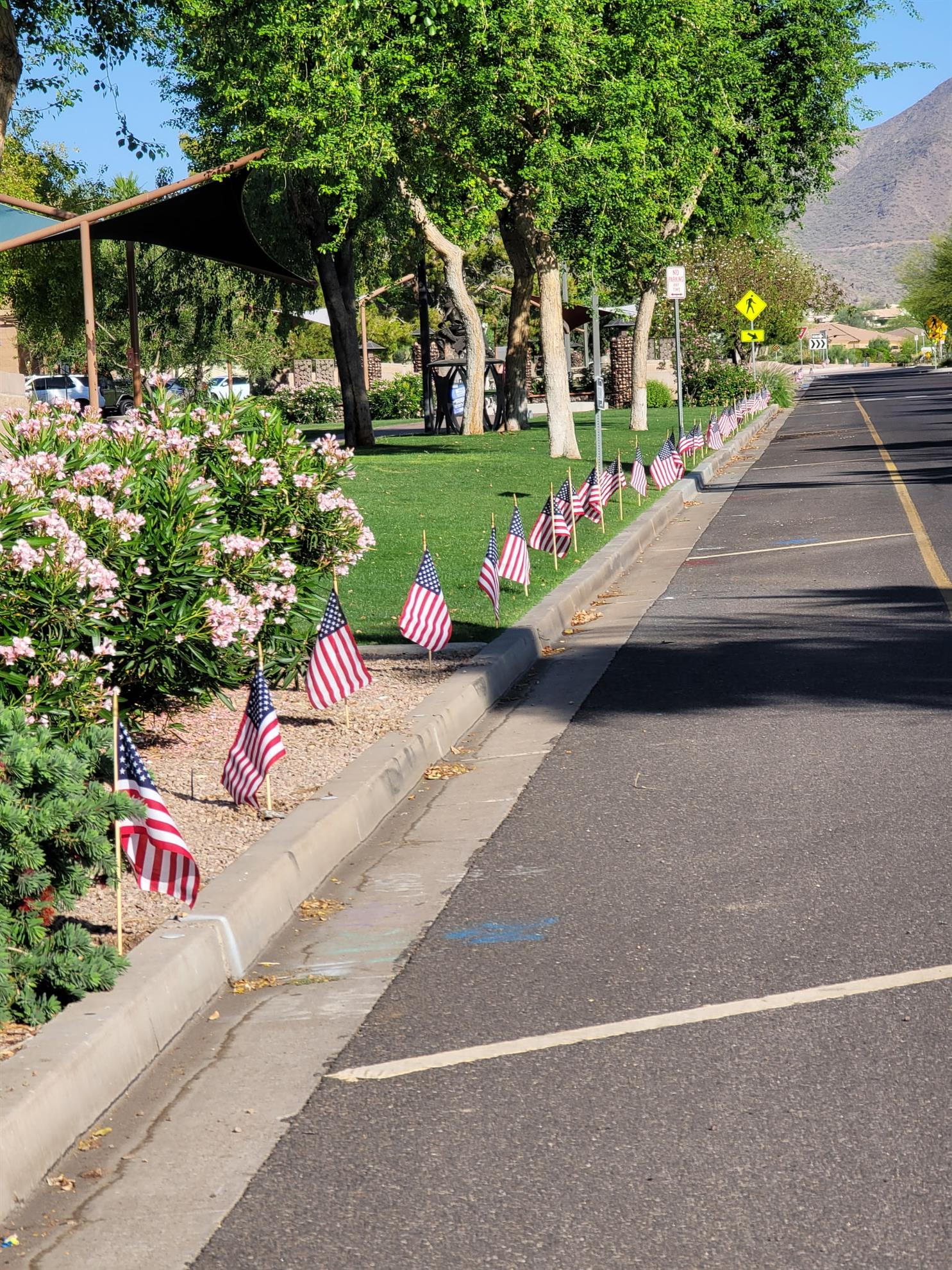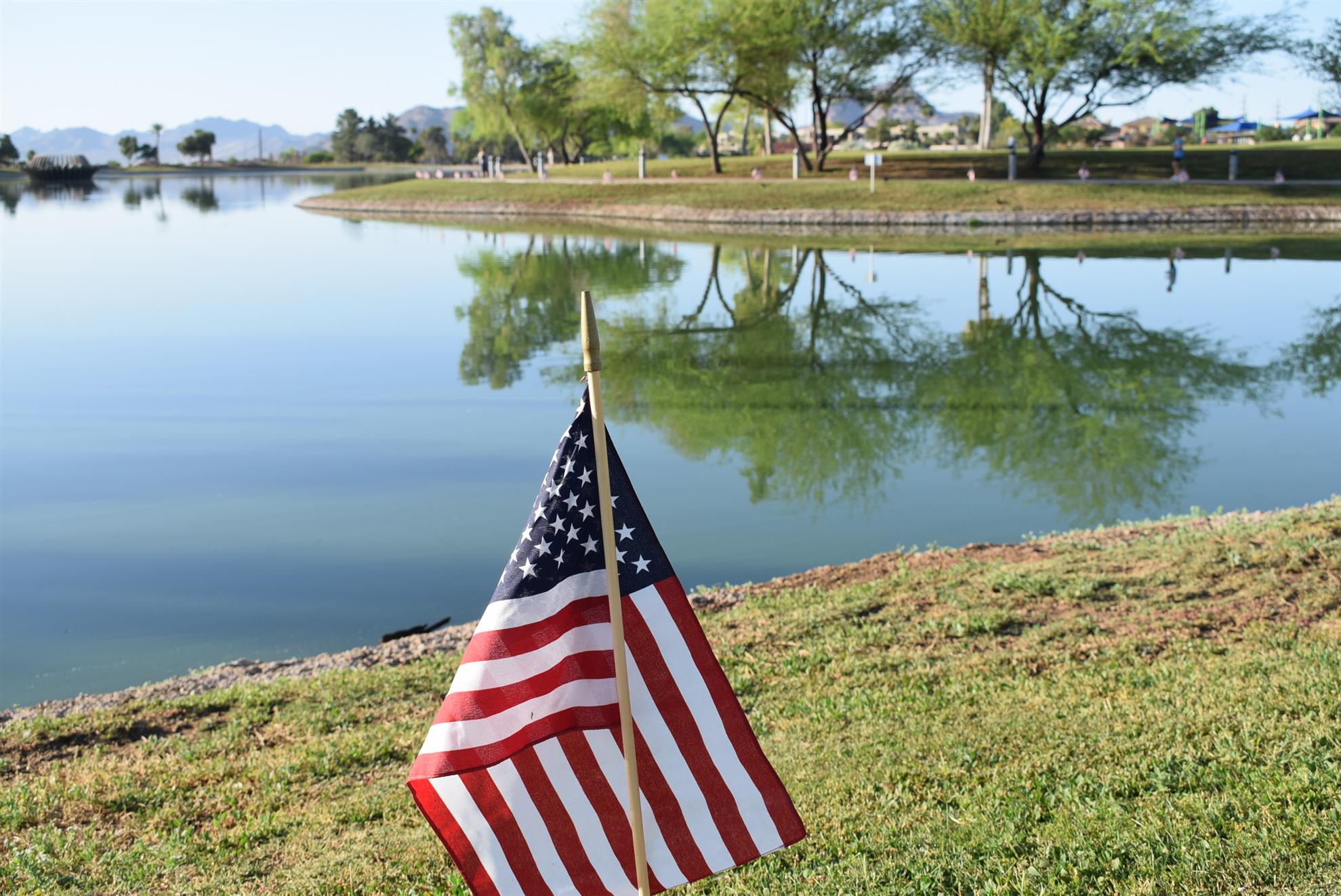 Four Peaks Rotarians are joined by members of the Fountain Hills community to honor our fallen servicemen by placing flags around Fountain Park and Avenue of the Fountain.